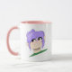 Cartoonista decorativo e divertido rosto feminino desenhado. Aspecto otimista e observante, com cabelo roxo. Esta ilustração funciona na cor de fundo personalizada. Cred: Caroline 2021