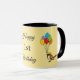 Uma ilustração de um giro cartoon kawaii com balões de aniversário coloridos. Comemore sua festa de aniversário de criança com este design das necessidades da festa, acessórios para presentes. Personalize ou personalize esta caneca com seu próprio texto. Esta caneca pode ser um bom presente ou lembrança para o seu convidado.