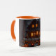 Entra num reino de encanto estranho com esta representação assombrosa de uma misteriosa casa assombrada cercada por abóboras brilhantes. Perfeito para aqueles que se admiram no espírito de tingimento de espinha do Dia das Bruxas.
