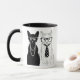 Características que deste design um gato fêmea preto se vestiu acima na colar da pérola e o gato masculino branco vestiu-se acima no laço dotty.