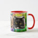 Caneca fotográfica personalizada com fotos favoritas (de gato), enquadrada por um design colorido de vidro de fosco. Bonito como presente para um amante de gato ou um amante de cachorro. Claro que você também pode adicionar suas fotos de viagem favoritas ou outras imagens e usar esta caneca para um propósito diferente!