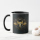 Composição de preto e ouro desenhada artificialmente, simétrica, asas de pássaros, ouro, crânio de pássaros decorado com padrão dourado sobre fundo escuro e texturizado.Estilo gótico