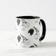 Cerejas pretas e brancas em uma caneca de dois tons.