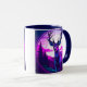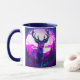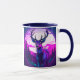 Une image féerique et futuriste avec cette illustration d’un cerf majestueux évoluant dans un décor néon fascinant. Ses teintes vibrantes de bleu et de violet contrastent magnifiquement avec un fond montagneux baigné de nuances roses et mauves, créant une ambiance à la fois mystique et moderne. Ce design artistique unique allie l'élégance de la nature et un style cyberpunk captivant, idéal pour les passionnés d’illustrations numériques, de faune et d’univers fantastiques. Une image immersive qui invite à la contemplation et à l’évasion.