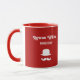 Adicione seus detalhes sobre este chapéu branco e a silhueta de bigode no design de fundo vermelho para seu negócio de compro de barbeiros.