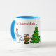Esta é uma caneca divertida de se dar de presente ou de se usar durante o feriado. Ele apresenta meus lindos personagens Chrismukkah: Um homem de neve, elfo, gnomo, rena, Papais noeis e uma árvore de Natal com a Estrela de David no topo. O texto pode ser alterado nesta caneca ou removido. Também, se você não quer o azul que eu estou mostrando isso em você pode mudar de cor. Além disso, você pode comprar este design em qualquer um dos itens de bebendo oferecidos. Desenhado por Sheila Cicchi, Brownielocks.com. Todos os Direitos Reservados.