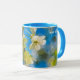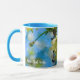 A cereja branca encantadora floresce numa árvore contra o fundo das folhas verdes e do céu azul. A beleza da estação de primavera. Você pode alterar ou excluir o texto de modelo personalizável. Você pode transferir este design para uma variedade excelente de outros produtos, em particular: cortina de chá, esteira, cobertores, travesseiros, toalha de mesa, mesa, toalhas, cama de cachorro, camiseta de painel, canecas, cartas de jogar, skate, mesa de pingue-pongue, bandana, etc. Basta escolher um presente que você gosta na longa linha de produtos. Se necessário, use a opção Editar Design para posicionar a imagem em um produto com uma função de ajustado/preenchimento ou para alterar a fonte, a cor do texto personalizado. Uma caneca de café artística única para você. Aproveite, comprar um, e seja feliz.