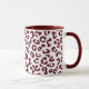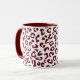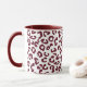 Uma caneca de café em uma digital, minimalista, impressa em um padrão de chita - pontos em marrom / burgundy, sobre fundo branco