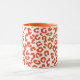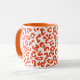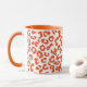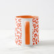 Caneca de café em uma digital, minimalista, impressa em um padrão chita - pontos em laranja profundo em um fundo branco