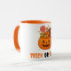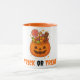 Ponha a sua mama favorita em estilo assustador com esta caneca festiva do Halloween, com um balde de abóbora alegre, cheio de doces e lóbulos coloridos. Perfeito para café, chá ou cacau quente, este design lúdico faz um excelente adicional à decoração da cozinha do Dia das Bruxas ou um presente sazonal divertido para amigos e familiares.