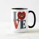 Veja o dentro de Chibi CatWomen de um coração vermelho que representa o "O" neste logotipo empilhado "LOVE".