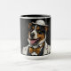 Chien de berger australien en costume trois pièces et chapeau melon blanc. Animal de compagnie amusant.