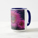 Coloque sua bebida favorita nesta caneca de Chihuahua Puppy e Flores Rosa. Apresenta um Adorável Puppy Negro e Tan Chihuahua em uma Flor Rosa...Surround por Flores Rosa e Roxos! Design de Arte Original Por Kerry Miller