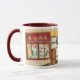Um homem tende a uma cozinha em um restaurante chinês enquanto a luz do sol entra pelas janelas atrás dele. Com um brilho fraco, os sinais de néon anotam "ABEN" e "Restroom" no Mercado Pike Place em Seattle. Em acrílico e pastel em papel. Personalize este produto com seu próprio texto e imagens usando o botão "Personalizar o produto"!