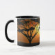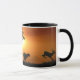 A silhueta de uma chita que persegue abaixo de uma gazela. As chamas do por do sol atrás deles.