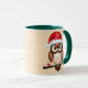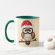 Ce design charmant présente une illustration détaillée d’une chouette brune et blanche perchée sur une branche. La chouette porte un bonnet de Noël rouge parsemé de flocons de neige blancs, ajoutant à l’esprit festif. Ses grands yeux captivants attirent l’attention, tandis qu’un petit cadeau rouge avec un ruban blanc repose subtilement à la base de la branche, suggérant la nature généreuse de la saison des fêtes. Ce design capture la chaleur et la joie de Noël à travers la représentation de cet oiseau emblématique de l’hiver dans un cadre cosy et célébratoire.