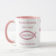 Cristão rosa a testemunhar caneca. Lembre-se de mudar o nome para personalizar a caneca! Todos os textos e objetos (Ichthys Fish & Cross) podem ser coletados usando o botão 'editar design'.