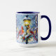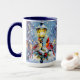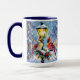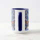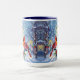 A beautiful seasonal Christmas coffee cup with an impasto style illustration of a female and male cardinal sitting on a festive lamppost on a snowy winter day.
