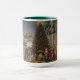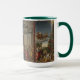 Start your holiday mornings with a blend of sacred tradition and festive cheer with this Ceramic Combo Mug. The bright white exterior of the 11 oz or 15 oz mug provides the perfect backdrop for our unique artwork, featuring the majestic Renaissance Nativity scene complemented by a towering Christmas tree and Santa Claus soaring through the night sky. The vivid, colored glaze on the rim and handle adds a striking, personalized touch that highlights the festive spirit.