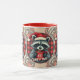 A charming raccoon dressed in a Santa hat holds a steaming mug of cocoa before a red buffalo plaid backdrop, capturing the cozy spirit of a rustic woodland Christmas. The combination of festive red, soft gray fur, and classic flannel pattern brings warmth and nostalgia to the holiday season. With its blend of whimsy and modern country style, this cheerful design perfectly embodies the charm of winter mornings and Christmas gatherings. AI generated artwork.