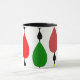 Esta caneca tem uma design moderna do século médio de gotas em linhas que se parecem com correntes de chuva.