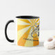 Esta caneca apresenta dois ciclistas de rodovia silenciosos com um fundo de explosão solar retrô. Ele pode ser personalizado com um nome ou qualquer texto que você queira adicionar. -