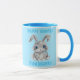Uma caneca de café aqua com um belo coelho de Páscoa de ambos os lados. Fácil de editar texto para se adequar à sua própria celebração de páscoa. Para alterar o nome ou ocasião, clique no botão personalizar. Este design contém alguns elementos de A.I.
