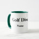 Uma caneca tão divertida para a golfista ser presente (ou comprar para você). A mulher de desenho animado golfista tem uma atitude divertida. Do outro lado está "Golf Diva" que pode ser removido ou alterado se você quiser. Abaixo, você pode personalizar isso com um nome. Coloquei isso em uma caneca verde para golfe, mas você pode comprar isso em qualquer das outras cores oferecidas também. Você também pode comprar este design em qualquer um dos itens de bebendo oferecidos. Desenhado por Sheila Cicchi, Brownielocks.com. Todos os Direitos Reservados.