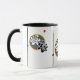 Esta caneca de café amigável contemporânea da flor em características elegantes do preto, do cinza, e as brancas apenas o número direito de acentos geométricos em amarelo brilhante e no vermelho. Uma caneca de café amigável da flor faz todas as ocasiões especiais. Design original por Anne Bell.