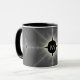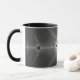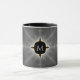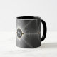 Esta caneca combo monificada apresenta uma arte fractal abstrato em cinzas escuras e cores pretas.