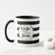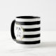 Listras modernas de preto e branco são o fundo desta caneca engraçada que nos lembra de agarrar o dia. A citação "Carpe the heck out of the diem" é enquadrada por uma coroa de flores e verde, sábia e natural, e faz uma caneca de café excelente para começar seu café da manhã e dia com ela.