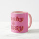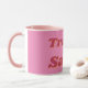 Caneca de café engraçada para todas as garotas do interior que vivem alto astral no parque de trailers. Texto estilo retrô rosa Sapatão e Sordido em fundo rosa