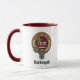 Crachá da crista Clan MacDougall rodeado por uma correia e fivela sobre fundo tartano. Texto personalizado de ambos os lados.