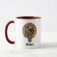Crachá da crista Clan Wallace rodeado por uma correia e fivela sobre fundo tartano. Texto personalizado de ambos os lados.