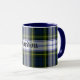 Excelente que olha a caneca escocesa do clã feita no teste padrão azul, verde, branco, e amarelo clássico da xadrez do vestido de Gordon. O texto do estilo do Velho Mundo no preto lê Gordon e é customizável ler o que você quer.