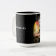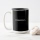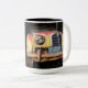 Um grande dois tom, 15oz. agrida a caracterização da arte original de Elizabeth Ansley-Fisona de um carro clássico velho oxidado e do texto "clássico." qual o diz todo.