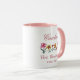 Adorável caneca personalizada para uma nova mãe ter uma menina. O design apresenta uma ilustração giratória, pintada à mão, de uma flor de aquarela em cores vibrantes. Crie o seu próprio presente de uma espécie ao adicionar o nome do novo bebê. Os artigos de papelaria de chá de fraldas, decorações de chás de fraldas e presentes de chá de fraldas podem ser encontrados no repositório.