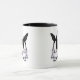Um gráfico computacional de um coelho preto e branco enfeita esta caneca. A jante e a alça também são pretas para combinar. Um presente de excelente para quem ama coelhos.