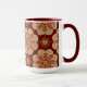 Esta caneca decorativa apresenta um padrão de medalhões de ouro sobre vinho. A dentro e a alça da xícara é marrom. Este padrão é originário de um design de azulejo original. Os medlhões e as cores ricas dão-lhe uma sensação boêmica. As cores incluem o açougueiro e o pêssego, num fundo de vinho. Use isto na sua cozinha, na casa de banho ou na lareira. É perfeito para a casa de campo ou fazenda. Esta design vem do azulejo de Oregon Fay Jones Day.