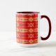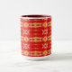 Vermelho com um impressão floral amarelo padronizado. O fundo vermelho do celeiro pode ser mudado para qualquer cor. O texto pode ser adicionado para personalizar ainda mais.