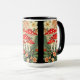 Caneca Cogumelos Agáricos Vibrantes e Elementos Botânicos