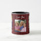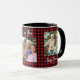 Caneca Colagem de Fotos da Família de Natal Vermelho Xadr