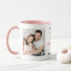 Faça o seu primeiro presente de dia de as mães único personalizando a caneca de fotos com duas fotos favoritas e uma mensagem personalizada.