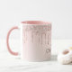 Uma caneca elegante, feminina e de vidro. Coloca o aspecto de pingar tinta. Plano de fundo de gradiente rosa embebido. Personalize e adicione o seu nome e as iniciais do monograma.