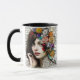Caneca Collage Art | Garota Bonito com flores no cabelo