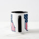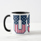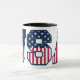 Gift your friend this mug with this patriotic USA College font text decorated in Stars and Stripes. The colors are white, Old Glory Red and Old Glory Blue. The letters have a dark blue stroke. The colors are one of the approved set of RGB values.