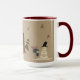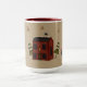 Uma caneca de café do estilo primitivo com uma saltbox vermelha de celeiro colonial. A neve agarra o telhado e os topos das árvores. De um lado está uma grande árvore coberta de neve e o outro é um boneco de neve que está pegando o correio. Certifique-se de verificar na minha loja outros itens que se coordenam para dar uma verdadeira primitiva e country olhar para a sua cozinha!