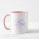 This colorful abstract neon splash coffee mug features a vibrant modern art design on a dark background.