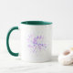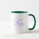 This colorful abstract neon splash coffee mug features a vibrant modern art design on a dark background.