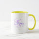 This colorful abstract neon splash coffee mug features a vibrant modern art design on a dark background.